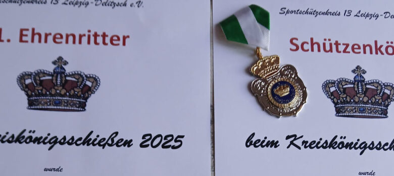 Am 3.10.25 fand in Delitzsch das Kreiskönigsschießen statt. Unseren Verein vertraten Lucas Kanitz (Herren) und Karsten Kanitz (Auflage). Beide konnten sich durch einen guten Treffer weit vorn platzieren: Lucas wurde Schützenkönig des SSK 13 und Karsten wurde 1. Ehrenritter. Lucas wird den Schützenkreis 13 am 8. November beim Landeskönigsschießen vertreten und wir drücken ihm dabei […]